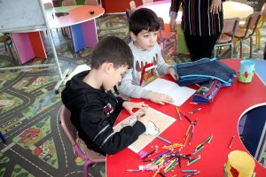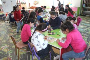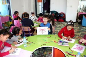 ♦️تمثيل القصة على شكل مسرحية صغيرة باستخدام أقنعة الحيوانات من صنع و تلوين رواد الورشات البيداغوجية.